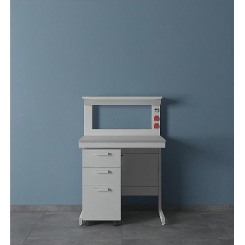 Стол лабораторный с полкой ЛК-900 СМ cостоит из прочного сборно-разборного металлического каркаса с полимерным покрытием серого цвета (RAL 7030), металлической надстройки с полкой из ламинированной ДСП и столешницы. Материал поверхности можно выбрать из нескольких вариантов руководствуясь протоколом испытания материалов столешниц. Правильный выбор материала является залогом долгой службы изделия.