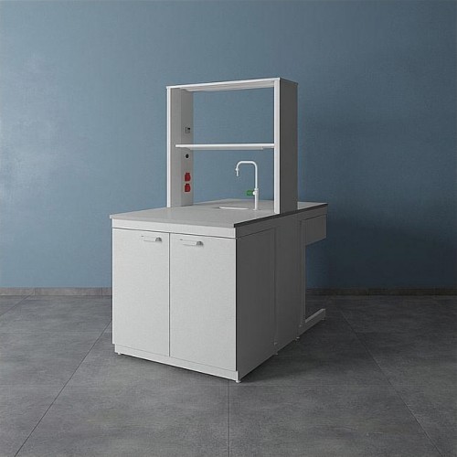 Стол островной ЛК-900 СО дополнительно может комплектоваться различными тумбами, а также сливными раковинами, кранами для подвода воды или газа (сжатого воздуха), которые монтируются в технологическую приставку.