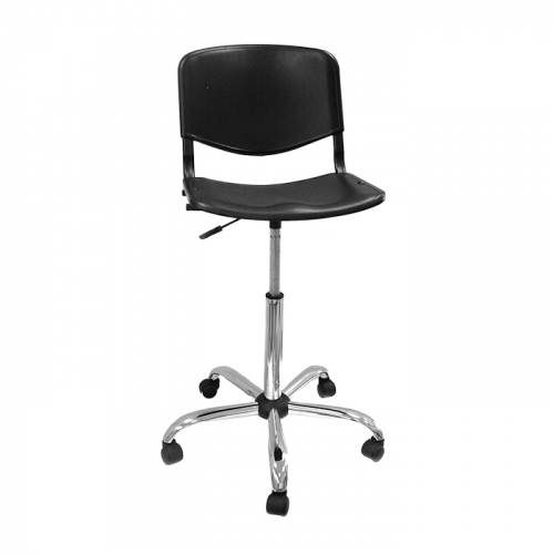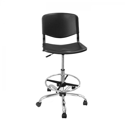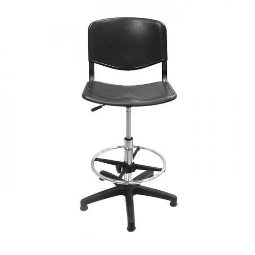 Материал сиденья и спинки лабораторного стула ТЕКО - пластик черного цвета.