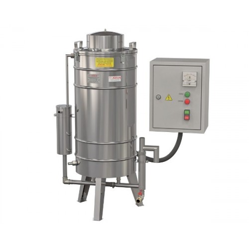 Дистиллятор оснащён датчиками контроля уровня воды, разборным конденсатором и другими устройствами повышающими качество дистиллята.