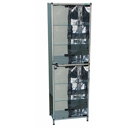 Имеет два отделения, каждое из которых оборудовано двумя стеклянными полками, стеклянной дверцей с замком. Установлен на винтовые, регулируемые опоры.