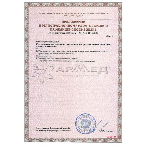 1. Уничтожитель игл и шприцев - 1 шт.