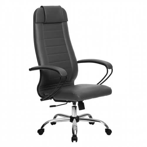 Спинка: высокая с мягким подголовником, черное полимерное покрытие каркаса ширина 475 мм;