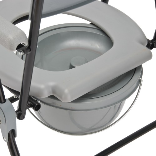 Рама кресла-туалета изготовлена из металла и имеет эмалевое лакокрасочное покрытие.
